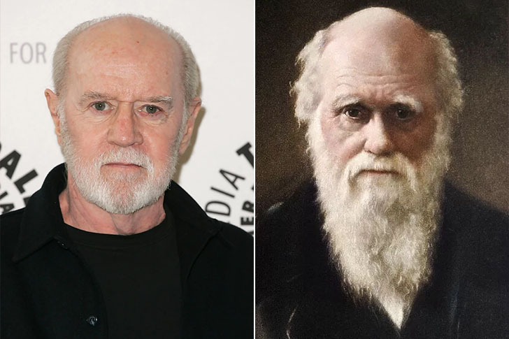 Si no hubieran nacido en distintas épocas parecerían 2 hermanos separados al nacer. Charles Darwin es el creador de la teoría de la evolución de las especies que estaba basada en la selección natural. Las especies que se adaptan a los cambios del clima y a las condiciones físicas del lugar donde viven, sobreviven, y las que no, desaparecen. Escribió el libro El origen de las especies. Su descubrimiento era para la época como una película de ciencia ficción. ¿Será casualidad que George Carlin fuera un actor, comediante y un crítico social estadounidense que iba contra lo establecido anteriormente?