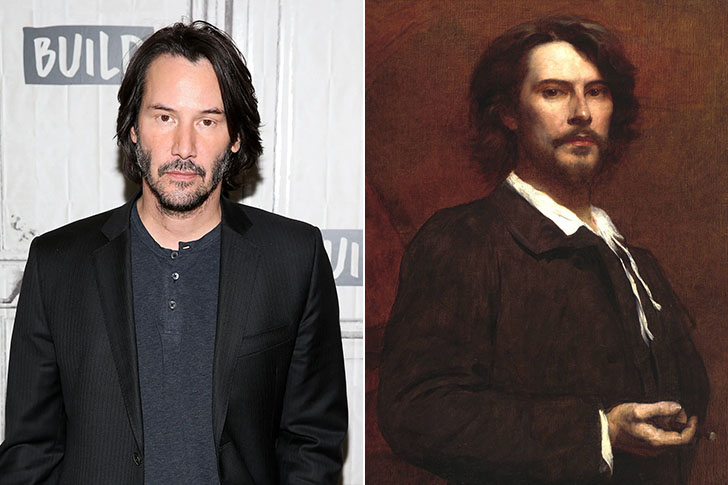 Louise-Maurice Boutet de Monvel nació en 1850 y falleció en 1913. Es un pintor francés e ilustrador de libros infantiles en los que usaba acuarelas. Fue uno de los ilustradores más importantes de su época. Keanu Reeves es un actor, actor de voz, músico, escritor, director y productor de cine, todo un artista. Su fama internacional la consiguió con la trilogía de Matrix donde interpretaba a Neo. Los 2 son artistas pero en distintos rubros, lo que no quita que parecen hermanos mellizos separados por la época pues Keanu Reeves nació en 1964.