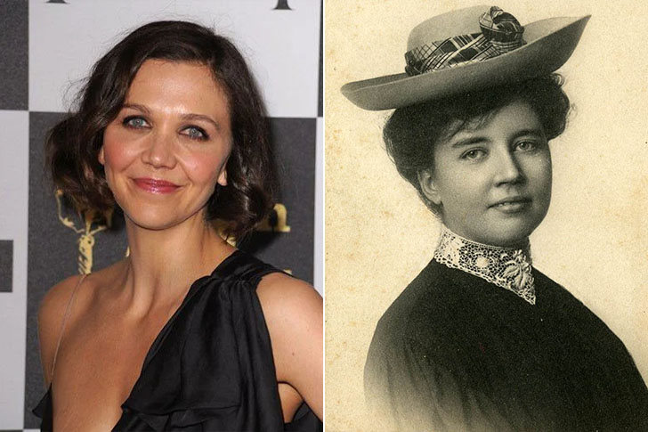 La líder y activista por los derechos de las mujeres, Rose Wilder Lane, es la querida actriz que en los años 60 y 70 interpretaba a Laura Ingalls en la serie La casa de la pradera, donde se mostraba a la querida familia Ingalls compuesta por unos padres amorosos y sus 3 hijas. Rose nació a fines del 1800 y falleció en 1968. Aclaremos que Maggie Gyllenhaal es una actriz contemporánea, más delgada y que posa sonriente, como se acostumbra a hacer al día de hoy. Podemos afimar que es el clon de Rose.