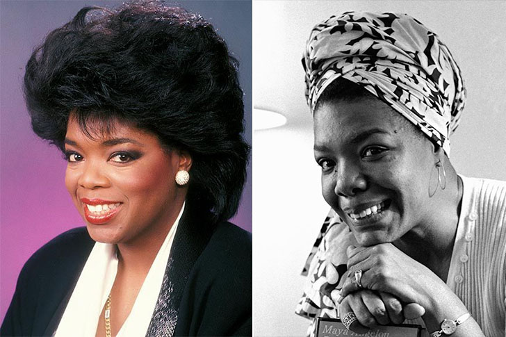 Marguerite Annie Johnson, conocida como Maya Angelou, es una escritora, cantante, poetisa, actriz, directora, productora, bailarina y activista por los derechos civiles estadounidenses. Recibió infinidad de premios y escribió 7 autobiografías, tal fue su influencia en la sociedad. Falleció en 2014. Tiene una doble con la que comparte la apariencia, el país de origen, la influencia en la sociedad y el activismo socia. Oprah es la conductora más importante de Estados Unidos y la siguen millones de personas. Activa contra la segregación racial. Fue nombrada durante muchos años como la mujer más influyente en Estados Unidos.