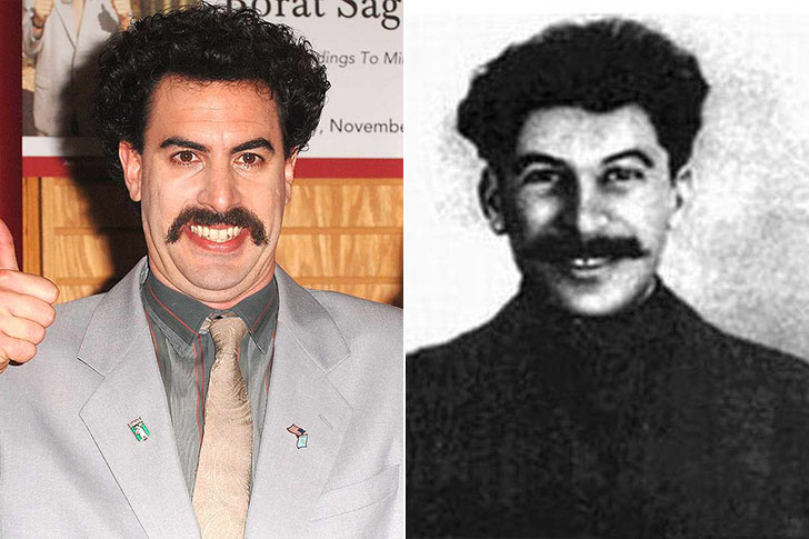 Sacha Noam Baron Cohen es un actor, comediante, guionista y productor inglés que nació en 1971. Hoy tiene 51 años. Su fama mundial se dio cuando hizo la película Borat en la cual había situaciones tan disparatadas que la gente se reía a carcajadas en algunas escenas y quedaba perpleja en otras porque su humor sarcástico. Nada más lejos de la realidad en la forma de ser de Stalin, un político revolucionario y dictador del régimen soviético, conocido por su ferocidad. ¡Pero en el plano físico son idénticos! Quizás reencarnó como humorista como un karma para compensar en esta vida el mal que hizo en la anterior.